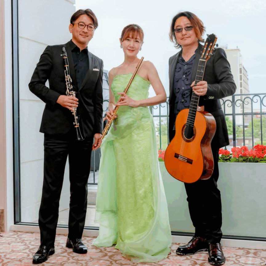 シチュエーションやご予算により、フルート/ギター、クラリネット/ギターのDUOから、ヴォーカルを+したアンサンブルなど。ご要望に合わせて多彩な編成もご提案可能です。